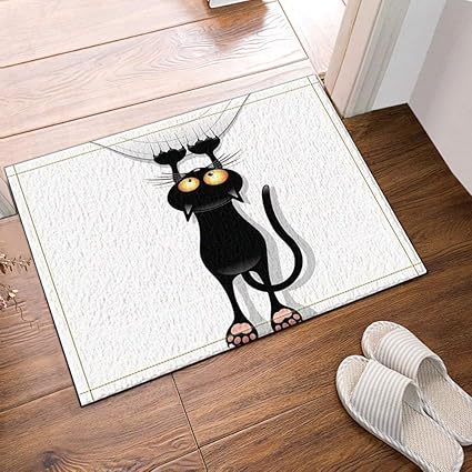 Dsgrdhrty Yeux Jaunes De Chat Noir De Dessin Anime De Fond Blanc Tapis De Bain Portable Dessin Anime Hd Amazon Fr Cuisine Maison