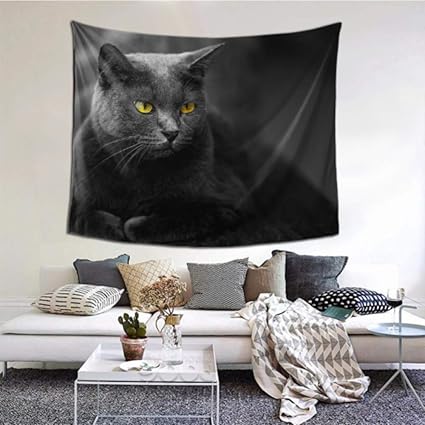 N A Mur Decor Bureau Chat Noir Avec Yeux Jaunes Rideau Tapisserie 60x51 Pouces 152x130 Cm Tenture Murale Art Decor A La Maison Polyester Pour Salon Chambre Dortoir Amazon Fr Cuisine Maison