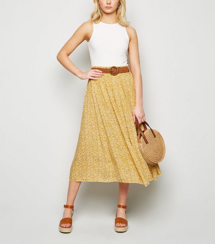 Apricot Jupe Mi Longue Moutarde A Imprime Marguerites New Look