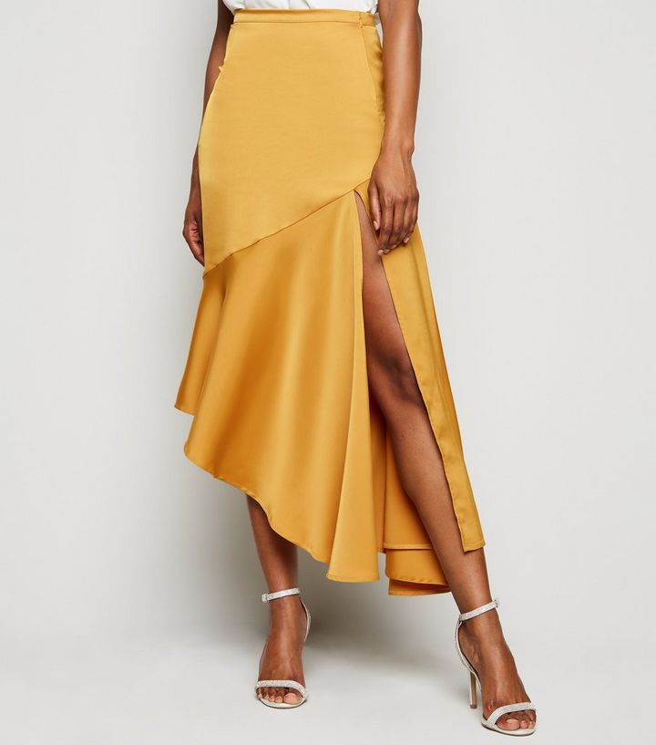Innocence Jupe Mi Longue Moutarde Satinee New Look
