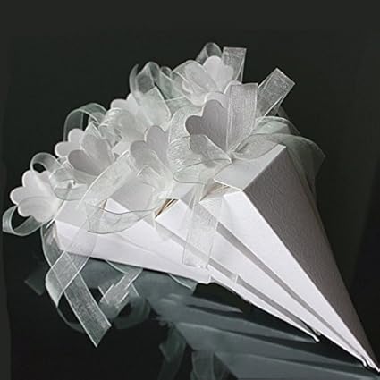 Interestmaker 50 Pcs En Forme De Cornet De Glace Confetti Cones Boites A Dragees Pour Mariage Candy Boites Boites De Cadeau De Fete De Mariage Chocolat Blanc Amazon Fr Cuisine Maison