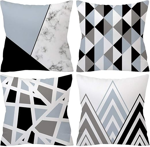 Housse De Coussin Chat Forme Geometrique Tendance Blanc Bleue Marron