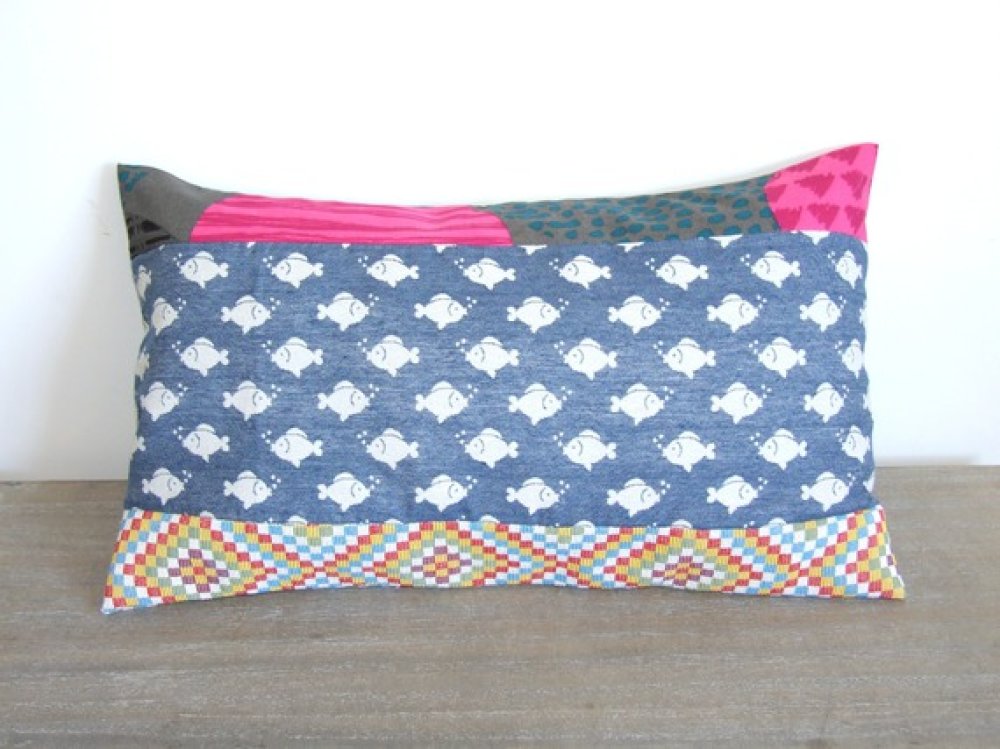 Housse De Coussin 30 X 50 Cm Taie D Oreiller Patchwork Motifs Poissons Marin Mer Losanges Ronds Graphique Moderne Tendance Un Grand Marche