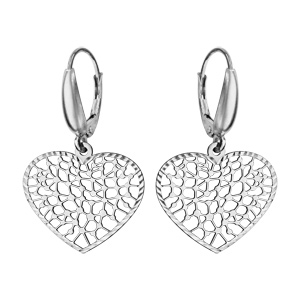 Boucles D Oreilles Pendantes En Argent Coeurs Ajoures En Dentelle Et Fermoir Dormeuse