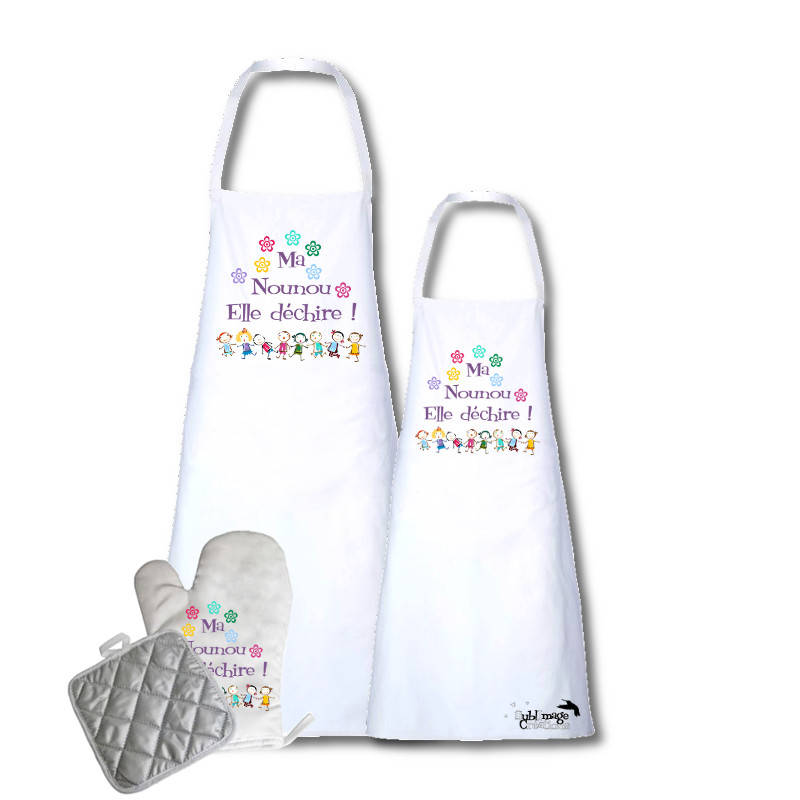 Set Tablier Avec Gant Et Manique Kit Cuisine Original Et Personnalisable Nounou Assistante Maternelle Idee Cadeau Ma Nounou Elle Dechire