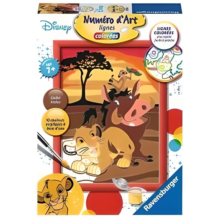 N/A Peinture par Numero Roi Lion animé Animal Bricolage Peinture par numéros Mur Art Photo Peinture Acrylique pour la décoration de la Maison 30 * 40cm (12 * 13 inches) Ravensburger – Numéro d’art – petit format– Disney Le Roi Lion – loisir créatif – peinture – enfant dès 7 ans –. Ne manquez pas de découvrir toute l’étendue de notre offre à prix cassé. Plus de 300 modèles complets à peindre soi même à partir de 12€ La référence française de la peinture par numéro Des collections variées, des genres et styles pour tous les goûts Livraison gratuite dans tous les pays francophones Activité d'art thérapie et d'apaisement pour les petits et les grands.