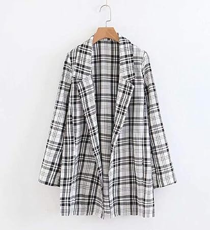 Wjmm Blazers Femme Grand Col Entaille Ouvert Coutures Noir Blanc Blazer A Carreaux Femme Cote Costume Fendu Veste Lache Manteau Survetement L Amazon Fr Sports Et Loisirs