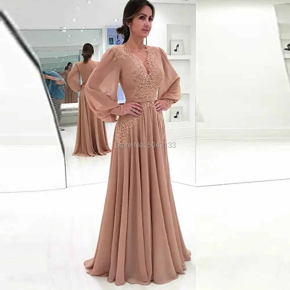 Robes Mere De La Mariee En Mousseline De Soie Manches Longues Pour Mere De La Mariee Robes De Soiree D Invites De Mariage A Col V Grande Taille Nouvelle Collection Aliexpress