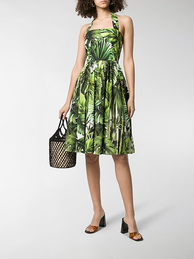 Dolce Gabbana Jungle Print Halter Dress Green Modes