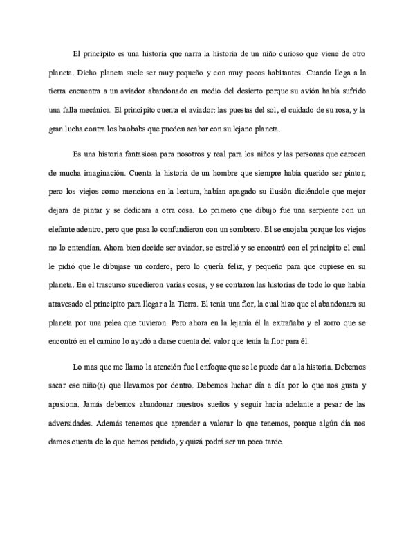 Doc El Principito Es Una Historia Que Narra La Historia De Un Nino Curioso Que Viene De Otro Planeta Amanda Colon Academia Edu