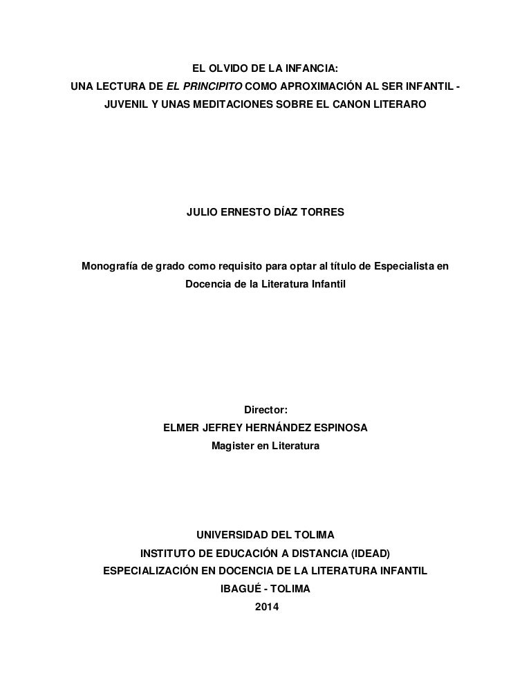 El Olvido De La Infancia Una Lectura De El Principito Como Aproximac