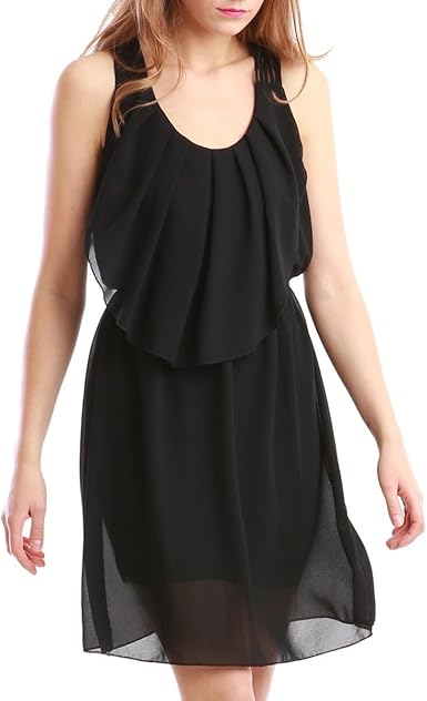 La Modeuse Robe Courte En Voile Doublee Sans Manchespresence D Un Volant Sur Le Devant De La Robe Amazon Fr Vetements Et Accessoires