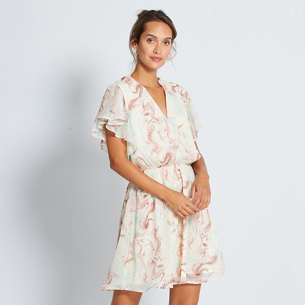 Robe Courte En Voile Crepe Imprime Multicolore Robes Femme Promod