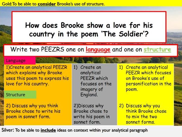 Gcse Wjec Eduqas English Literature Poetry The Soldier Rupert Brooke Analysis Lesson Teaching Resources