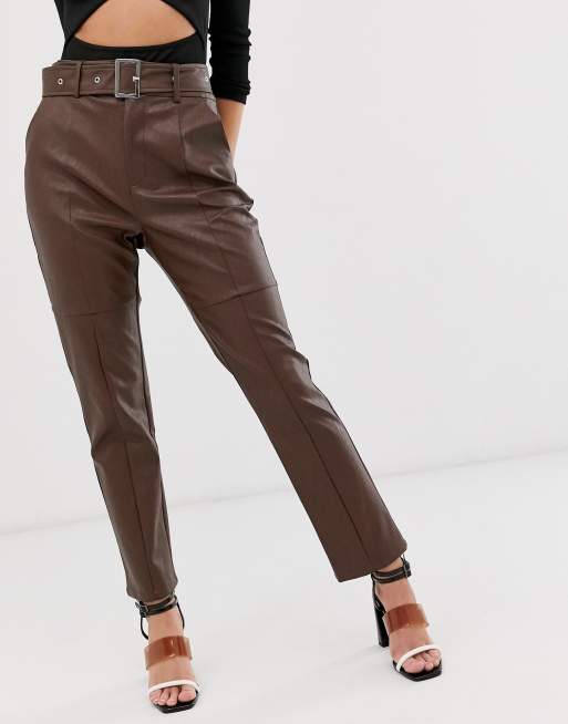 Pantalon Taille Haute Ceinture Effet Cuir Boohoo