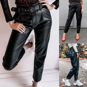 Acheter Pantalon En Cuir Noir Faux Avec Ceinture Elegant Pantalon De Crayon Casual Femme Automne Taille Haute Bureau Mesdames Vintage Trousers De 22 32 Du Happyego Dhgate Com