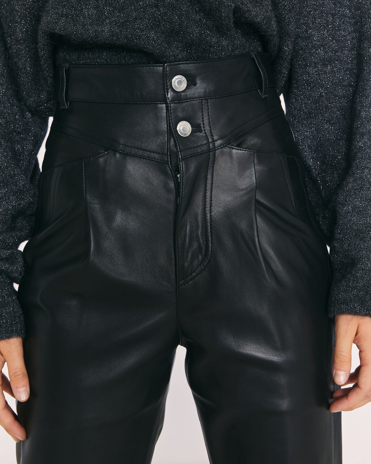 Pantalon Noir Taille Haute En Cuir D Agneau Femme Ikks Mode Automne Hiver Pantalon Short