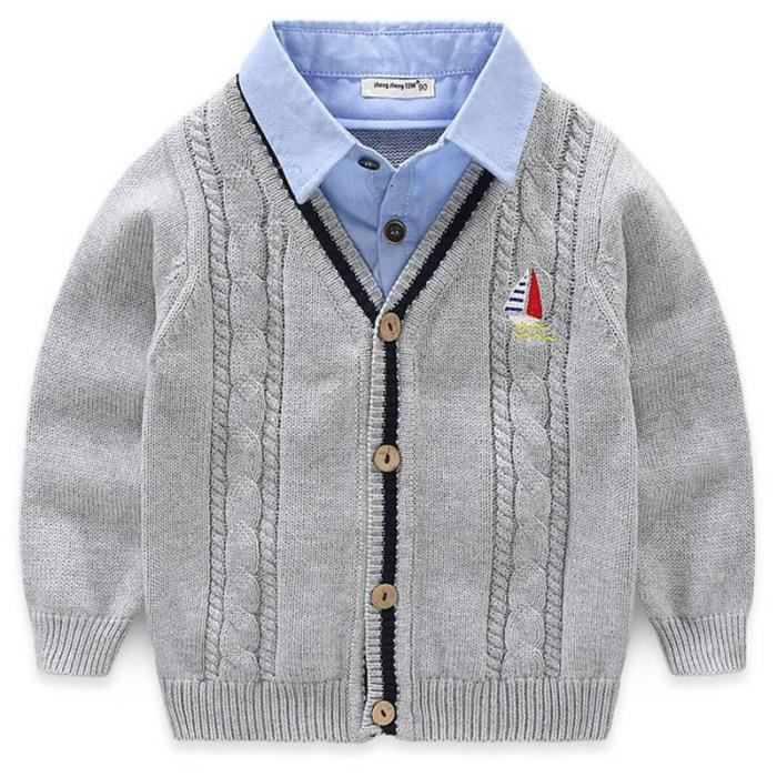 Pull Enfant Col En Tricot Garcon Cardigan Automne Gris Gris Achat Vente Gilet Cardigan Cdiscount