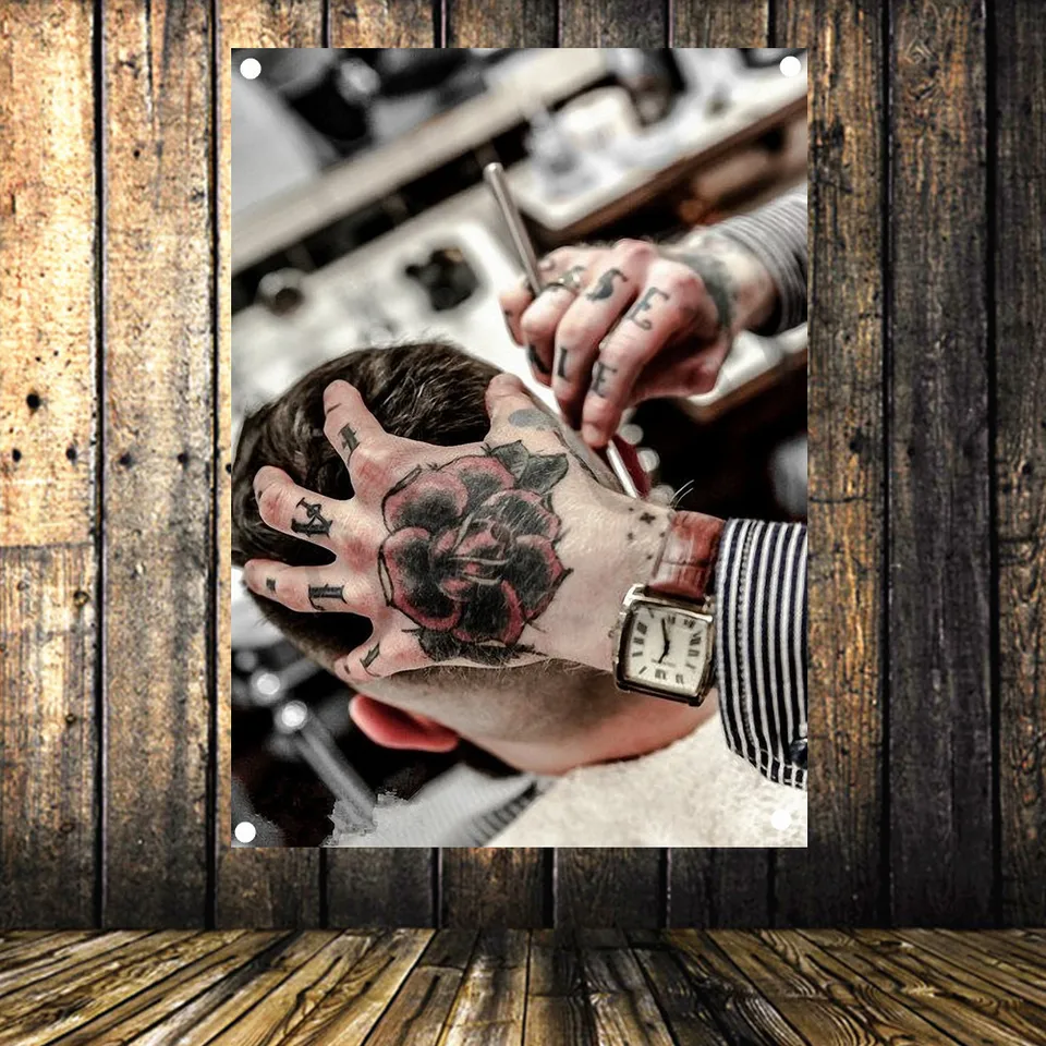 Barber Shop Tattoo Banner Cloth Art Retro Poster Tapestry Flag Mural Hanging Painting Hairdresser S Background Decor Cloth Flags Banners Accessories Aliexpress