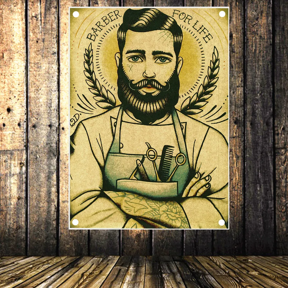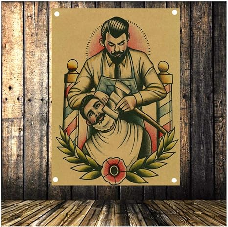 Amazon Com Ygacj Vintage Barber Shop Decoration Barber Shop Tattoo Flag Haircut Poster Store Sign Banner Wall Art Canvas Print Art 50x70cm Unframed Posters Prints