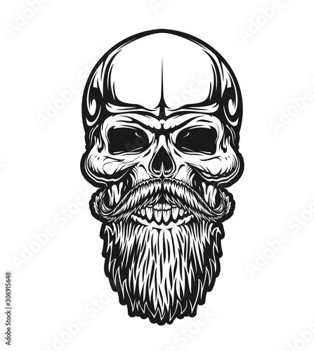 Skull With Beard And Mustaches Vector Icon For Hipster Barber Shop Tattoo And T Shirt Print Man Skull With Mustaches And Beard Vintage Retro Monochrome Outline Sign For Biker Club Buy This