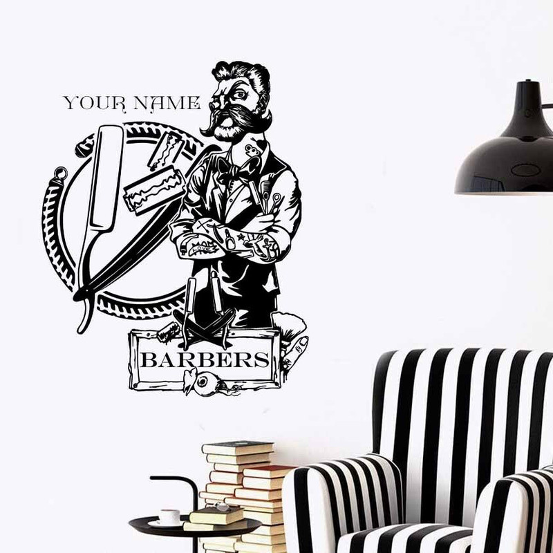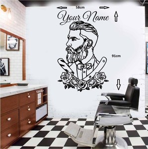 Custom Barber Shop Tattoo Hipster Decal Personalized Barber Shop Hair Salon Flower Window Wall Sticker Decal Vinyl Decor Mf50 Wall Stickers Aliexpress