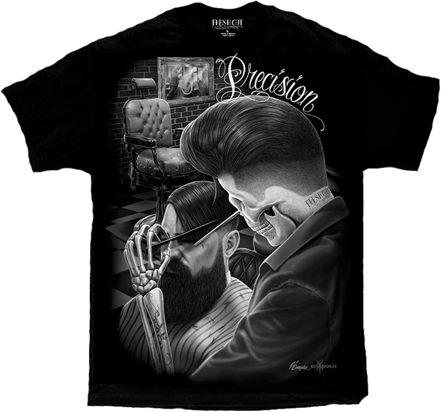 Amazon Com Fresh Cut Barber Shop Precision Rockabilly Greaser Tattoo David Gonzales Dga Art T Shirt Large Black Clothing