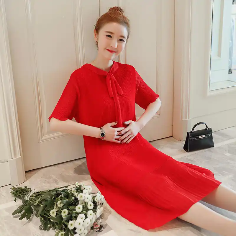 Robe Midi En Mousseline Pour Femme Enceinte Rouge Gris Vetements De Grossesse D Ete Ample Grande Taille Robes De Maternite Aliexpress