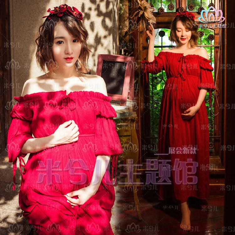 Nouvelle Maternite Femmes Enceintes Photographie Accessoires Robe Rouge Pure Grossesse Romantique Vetements Fantaisie Aliexpress