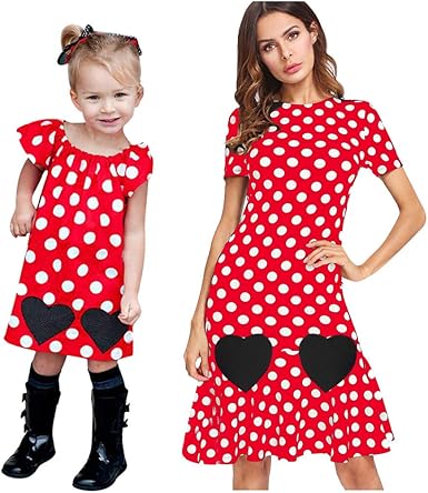 Day8 Robe Maman Et Fille Identique Chic Elegant Fete Vetements Famille De Soire Mere Fille Assorti A Pois Manche Courte Coeur Decoratif Robe De Bal Fete D Anniversaire Amazon Fr Vetements Et Accessoires