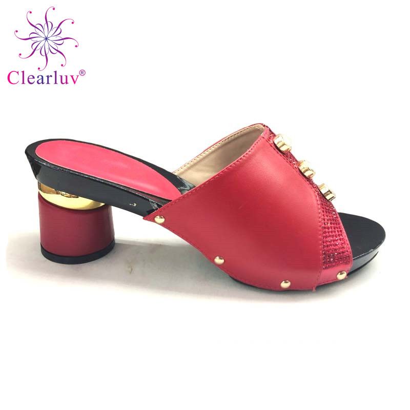 Pantoufles Pour Femmes Chaussures De Couleur Rouge Vin Chaussures Italiennes Nigerianes Chaussures En Cristal Africain Pour Dames Sans Sac Assorti Nouvelle Collection 19 Aliexpress