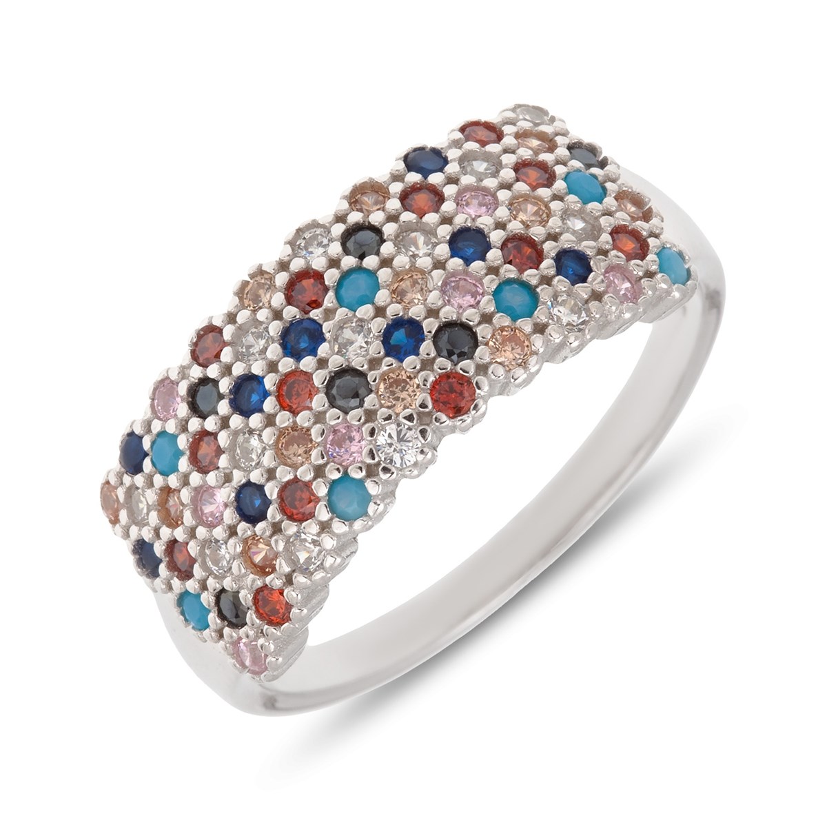 Large Bague Multi Anneaux Argent Et Zirconia Arg Ba