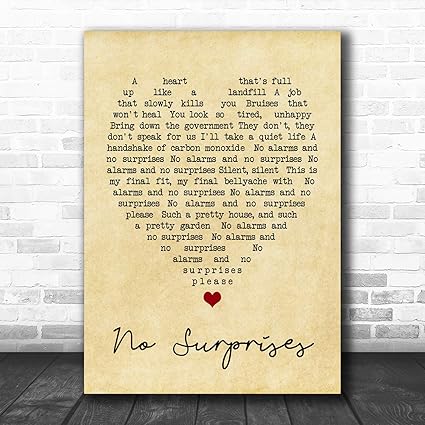 No Surprises Affiche De Paroles De Chanson Citation De Cœur Vintage Medium 11 7 X8 3 Amazon Fr Fournitures De Bureau
