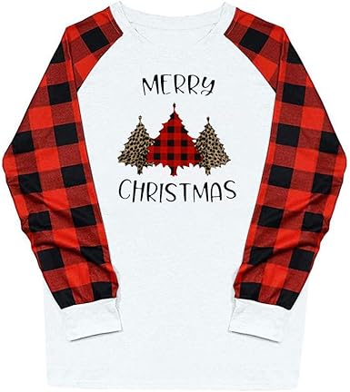 Susenstone Cadeaux De Noel Sweatshirt Femme Imprime Manche Longue Merry Christmas Lettre Imprime Pas Cher A La Mode Chemisier A Carreaux Pullover Amazon Fr Vetements Et Accessoires