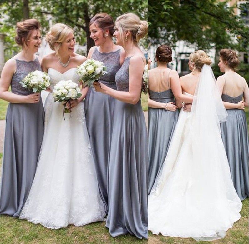 Acheter Robe De Demoiselle Dhonneur Grise Pas Cher Style Country En Dentelle 19 Dentelle Haut Une Ligne En Mousseline De Soie Sexy Dos Nu Demoiselle Dhonneur Robes Robe De Soiree De Mariage