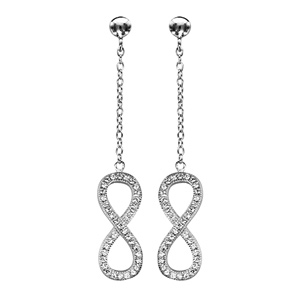 Boucles D Oreille Tige Argent Rhodie Pendante Motif Infini Grand Modele Oxydes B