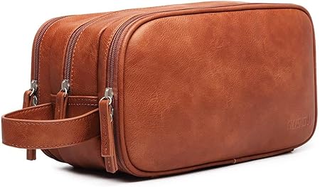 Trousse De Toilette En Cuir Pour Homme Sac De Toilette A Suspendre Sac De Maquillage Etanche Grande Capacite Avec Poignee Robuste Marron Amazon Fr Bagages