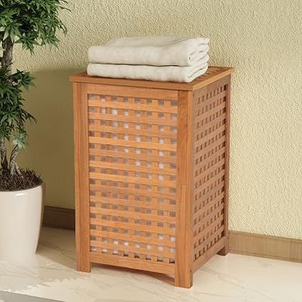 Luckyfu Panier A Linge En Bois De Noyer Massif 39 X 39 X 65 Cm Paniers Paniers Linge Sale Paniers A Linge Amazon Fr Cuisine Maison