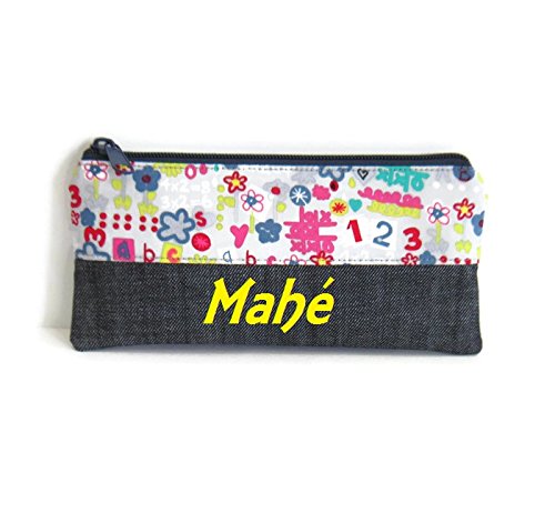 Trousse Scolaire Personnalisee Ecole Dessins D Enfant Multicolores Fond Gris Et Jean Bleu Trousse D Ecole Fille Trousse Prenom Cadeaux Personnalises Amazon Fr Handmade