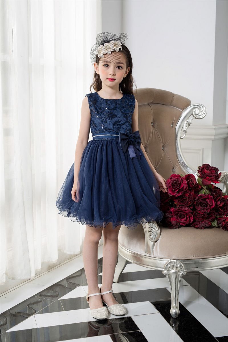 Princess Navy Blue Knee Length Flower Girl Dress Taffeta Sleeveless Baby Frocks Designs Girls Blue Dress Dresses Kids Girl