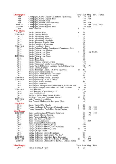 La carte des vins Notre cave s’enrichissant perpétuellement de nouvelles références, nous vous présentons cette carte à titre indicatif cartedesvinsArome0418 L’ARÔME PARIS Restaurant étoilé depuis 09 3, rue SaintPhilippe du Roule Paris 33 (0) 1 42 25 55 98 wwwlaromefr. 18 mai Explorez le tableau « Carte des Vins » de Sylvain Tourrière, auquel 391 utilisateurs de sont abonnés Voir plus d'idées sur le thème carte des vins, vins, vin.