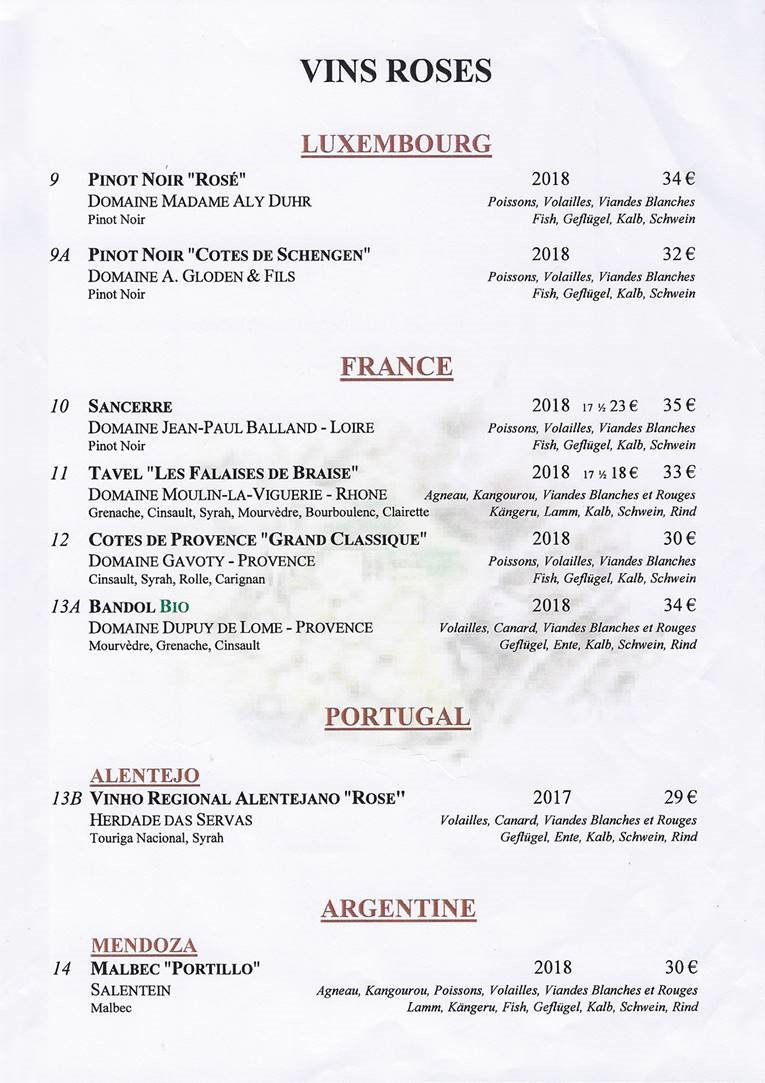 Carte Des Vins Du Restaurant De La Rose De Pindare