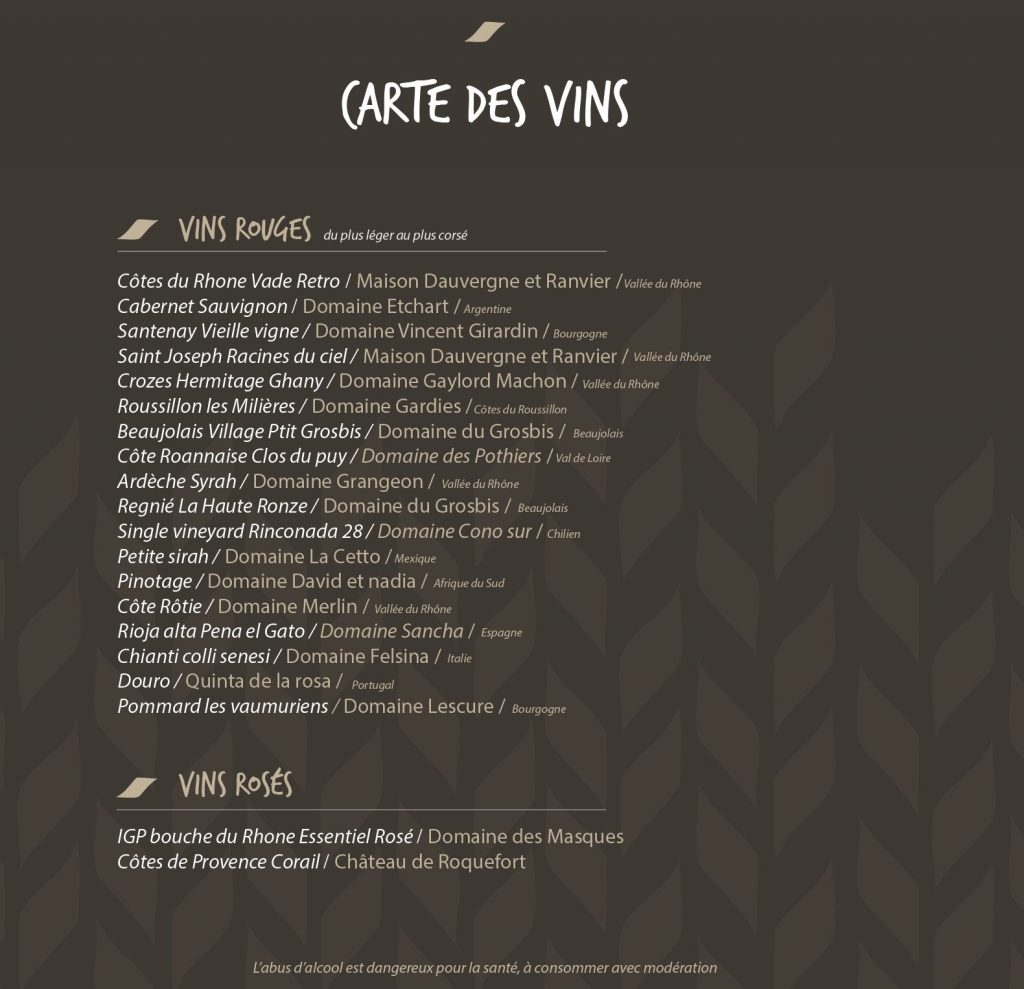 Les cartes Géovitis des vins de France vont vous aider à vous repérer dans la géographie des AOC/AOP du vignoble français Les cartes ludiques Géovitis “Les Stations” vous indiqueront les cépages présents dans les AOC/AOP et dans les IGP, de France. Carte des vins L'Oustau de Baumanière, au fil du temps, a constitué un véritable trésor En effet, notre cave qui compte près de 50 000 bouteilles constitue un exceptionnel voyage à travers les siècles, les terroirs et les hommes Cette richesse, depuis 1945, est le fruit d'un long et patient travail. Les Cartes des Vins Pour les cartes des vins il s'agit de mettre à la disposition du consommateur un répertoire à la lecture fluide et utilisable facilement Certains établissements comptent des centaines de références, d'autre possèdent des vins rares en quantité limitée qui demande une mise à jour régulière.