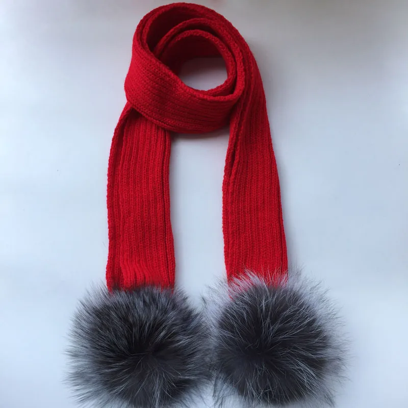 Royaume Uni Crochet Enfants Echarpe Avec Argent Renard Laine Pompon Tricote Fourrure D Hiver De Bebe Foulards Avec Amovible En Fourrure De Renard Pom Poms 150 16 Cm Aliexpress