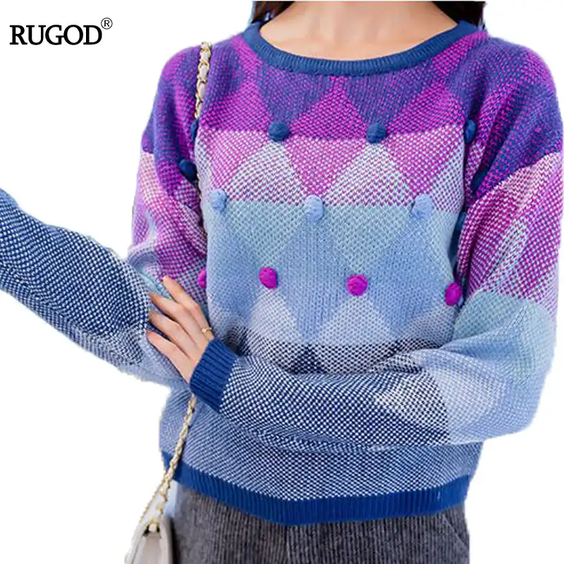 Rugod 18 Tricot Pull Femmes Pull Degrade Violet A Manches Longues Col Rond Tricot Pull Femme Tricots Pull Femme Aliexpress