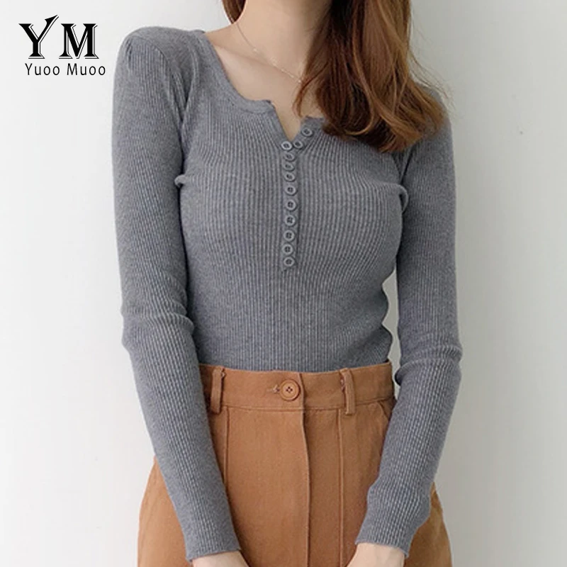 Yuoomuoo 19 Femmes Tricot Pull Col En V 15 Boutons Style Coreen Chandail Mode Elastique Pull Pulls Haut Pour Femme Pull Femme Aliexpress