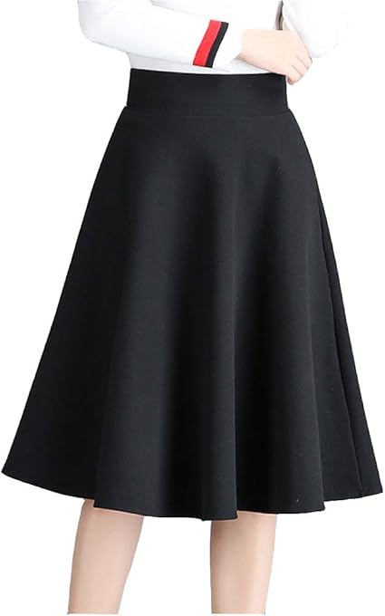 Laine Elastique Pour Femmes Taille Elastique Ligne A Jupe Mi Longue Automne Hiver Longueur Au Genou Jupe Plissee Pour Femme Black Xxl Amazon Fr Cuisine Maison