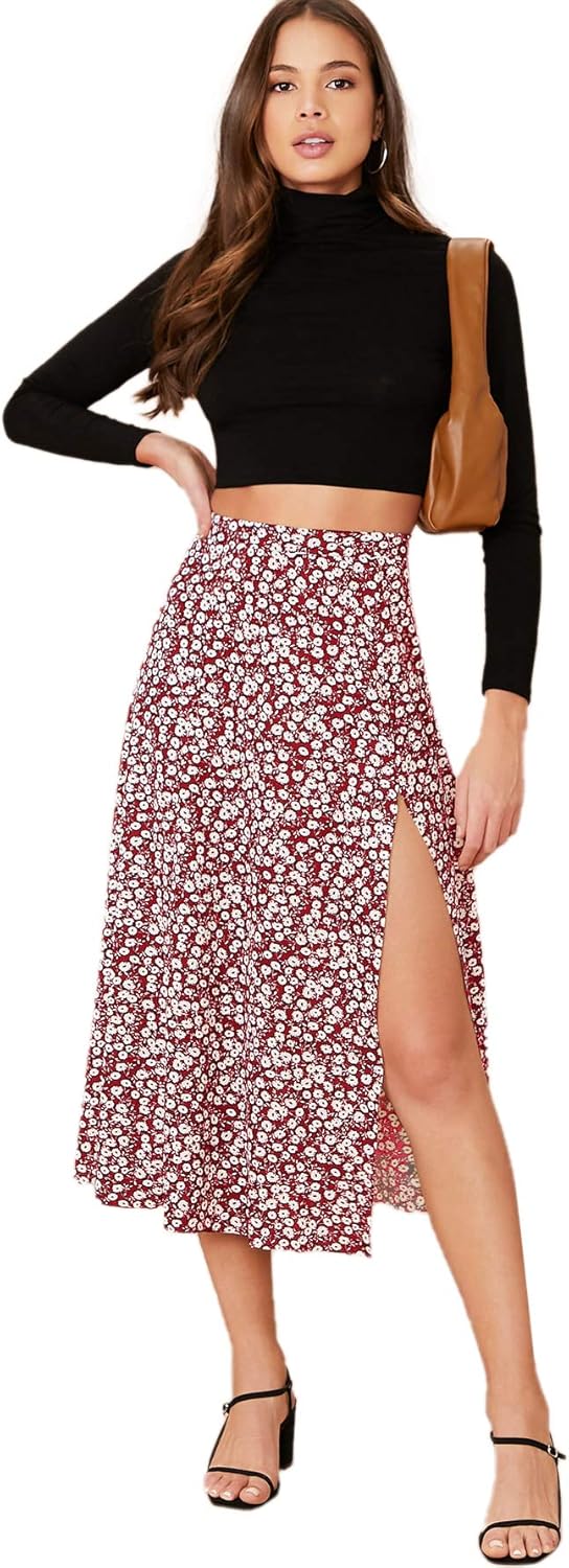 Jupes Vetements Didk Femme Jupe Fendue Fleurie A Imprime Floral Jupe Longue Boheme Boho Taille Haute Elastique Pour Printemps Ete