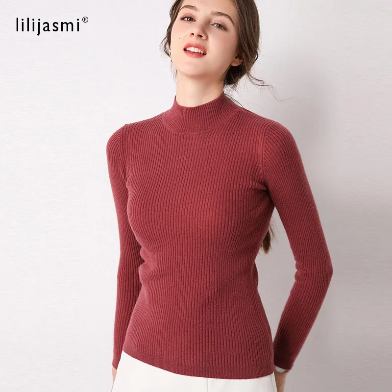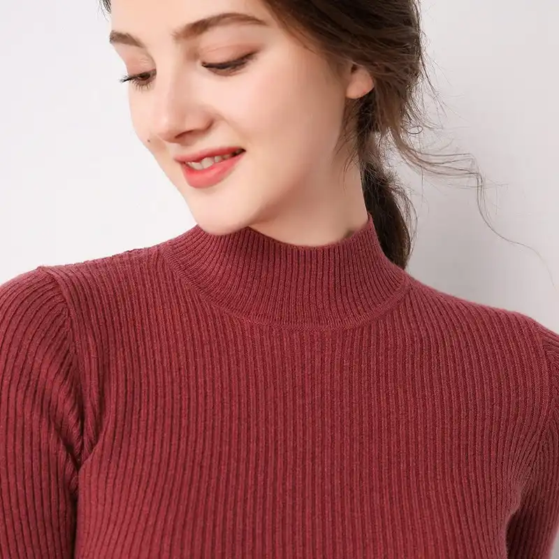 Vente Basique Femmes Demi Col Roule 100 Laine Merinos Cotele Tricot Slim Chandail Tendance Couleurs Col Montant Pull Dame Pulls Aliexpress