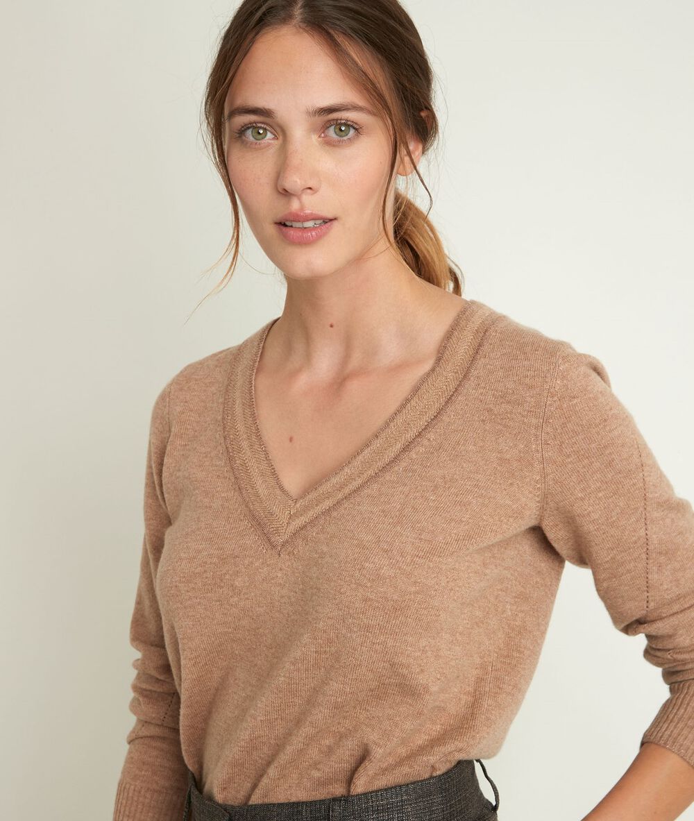 Soldes Pull Col V En Laine Et Cachemire Beige Pablo Femme Place Des Tendances